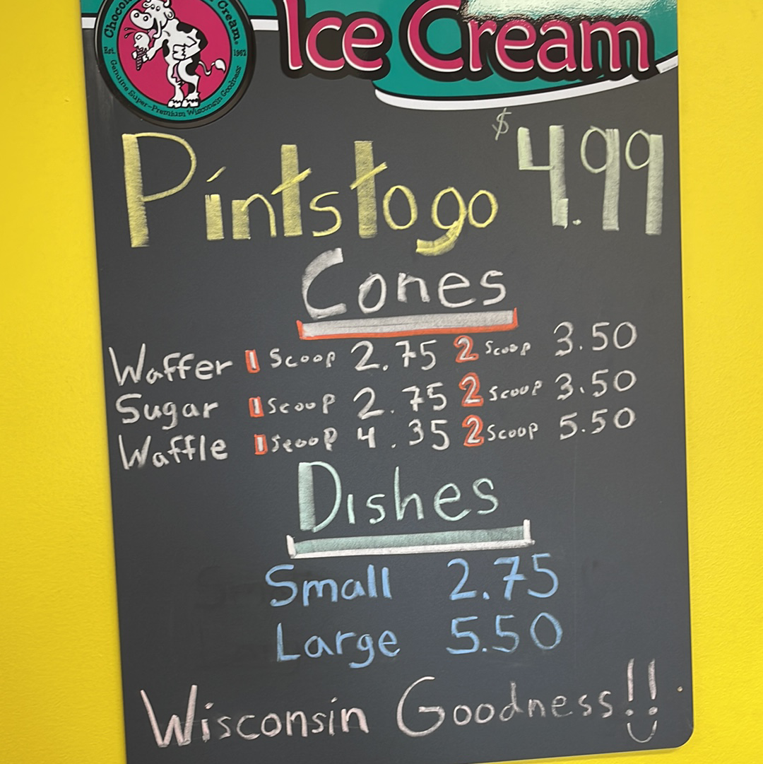 Blue Moon, Chocolate Zanzibar, Cookie Dough, Superman, This Just Got Serious, & Vanilla. Chocolate Shoppe Ice Cream Pints are available for delivery or carryout.